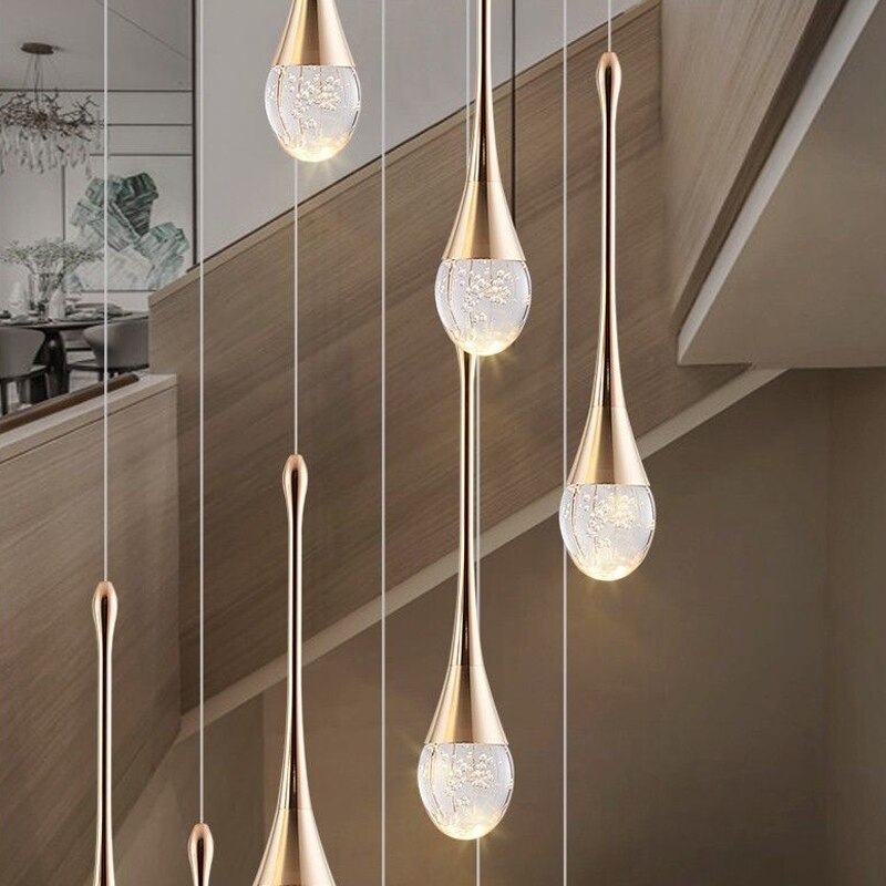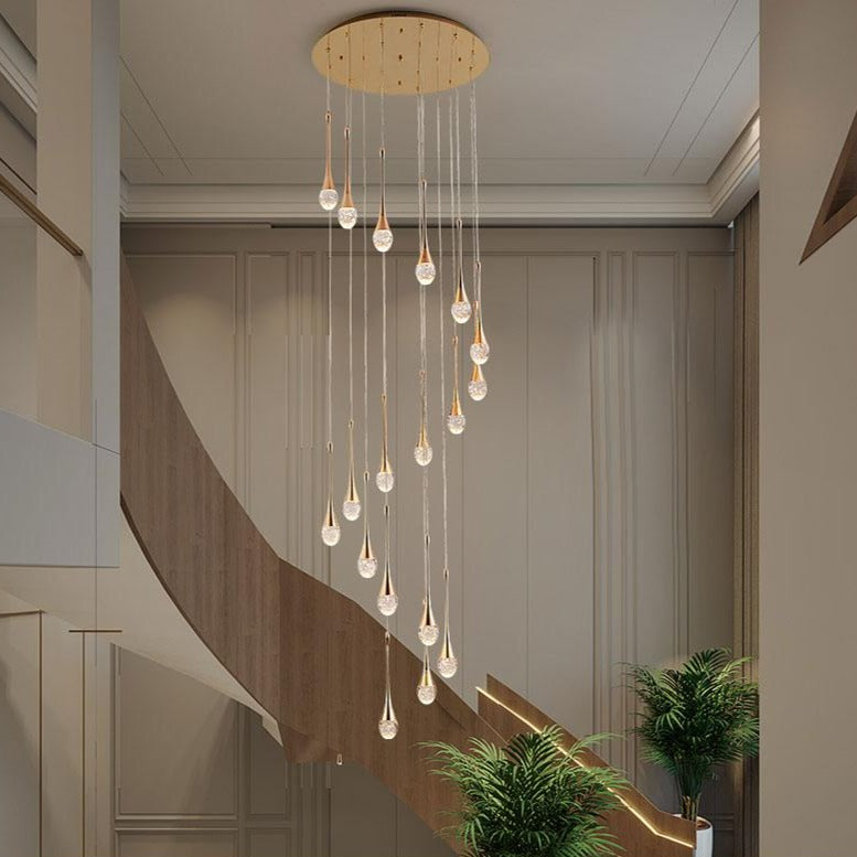 Like raindrops falling from the sky, this stunning Crystal Champagne Pendant will bring peace and warmth to your contemporary home or office. Available in a stunning array of multiple lights, this hanging pendant is ideal for any space that needs serenity and interest.