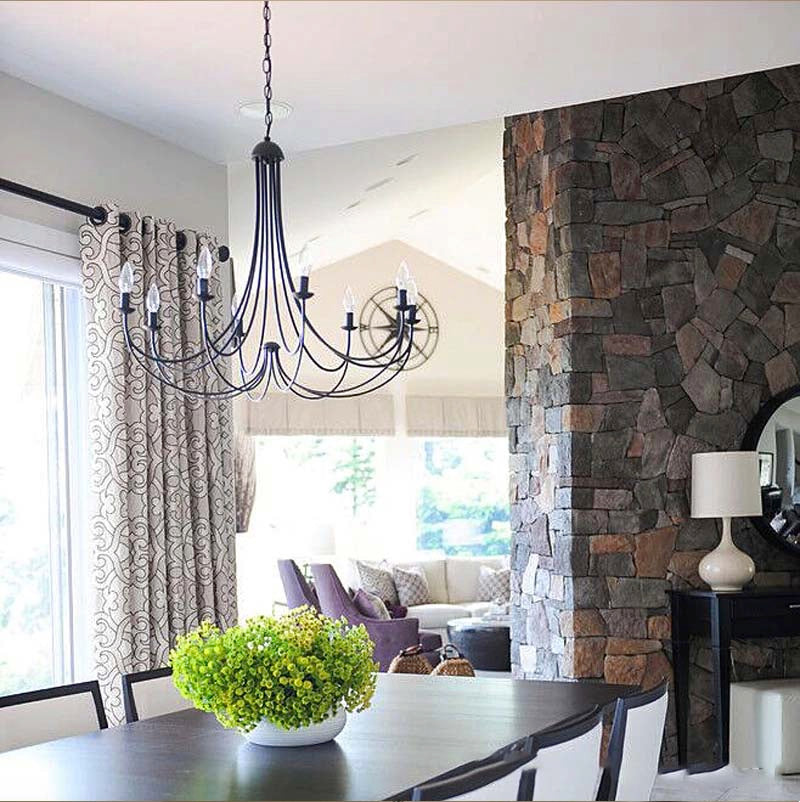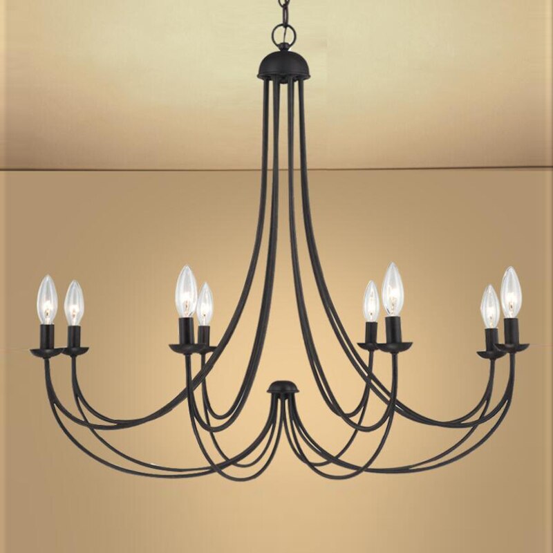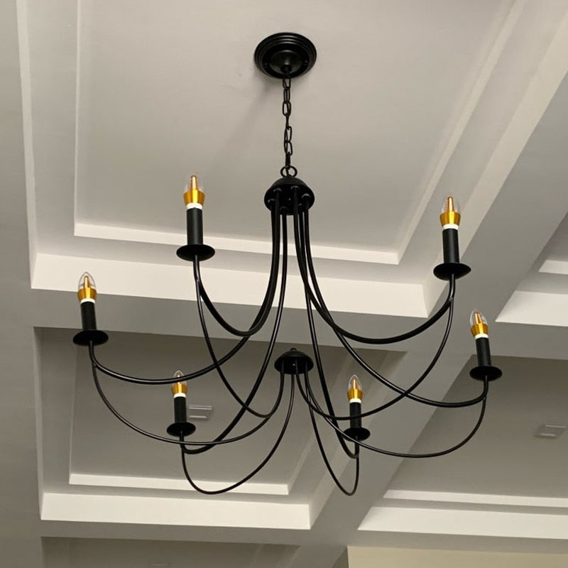 Classic with a modern feel, this beautiful Curva European iron chandelier mixes sophistication with contemporary style. This hanging lamp will make a perfect addition to any space, featuring elegant curves.