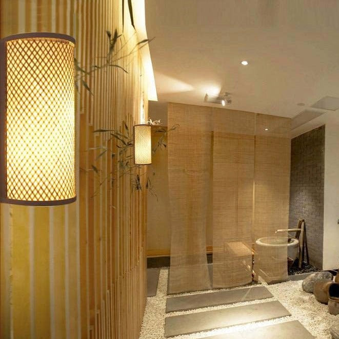 Subtle and offering a warm glow, this handwoven bamboo wall light will be a calming addition to your space. With a simple cross-hatch pattern, this wall lamp is ideal for any decor with its classic style.