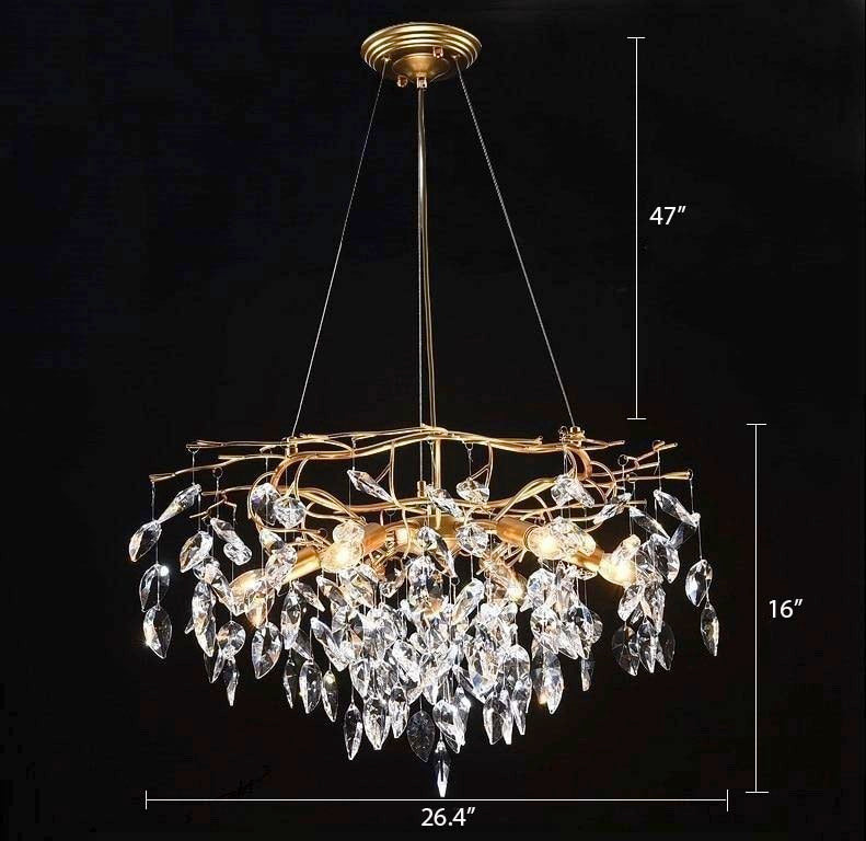 Bring the beauty of nature into your home or office with this refreshing Laurel Crystal Chandelier. Featuring natural lines and leaf-like crystals, this hanging light is the perfect addition to your modern or classic decor.
