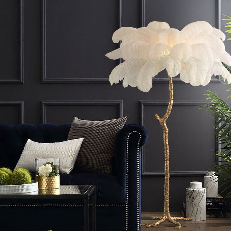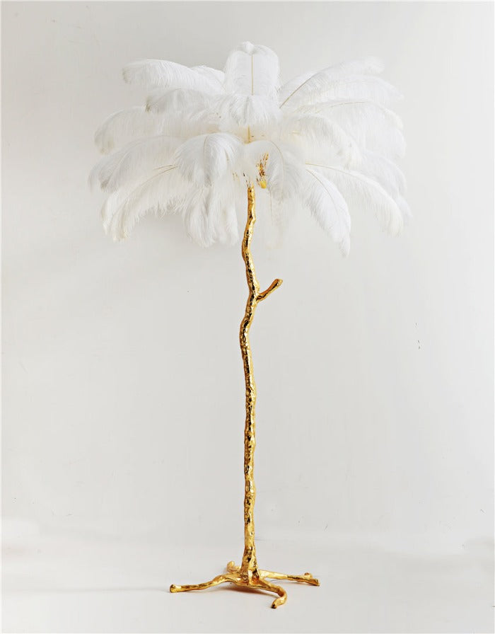 Bold and creative, this Regency feather table and floor lamp epitomizes luxury. Palm tree-like in appearance, this lamp also features a striking gold base and a beautiful array of feathers that will add elegance and splendor to your space.