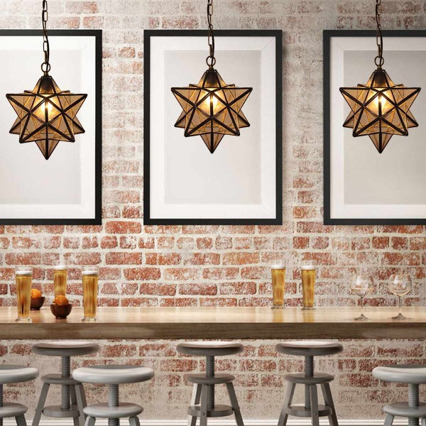 Like the stars brighten the night sky, this Stella glass pendant light will brighten your space while adding elegance and style. This star-shaped hanging light will be a beautiful and exciting addition to your home with its frosted glass finish and glowing light.
