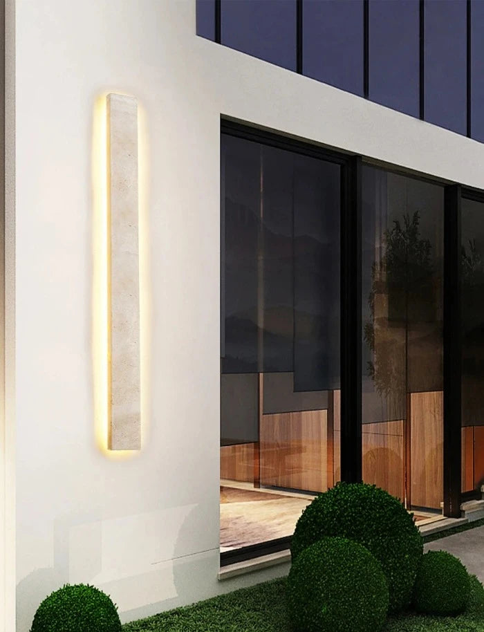 Elevate your outdoor space with our Travertine Natural Stone Wall Sconce. Each piece, meticulously carved from the finest travertine stone, boasts unique textures and patterns, bringing an unparalleled level of sophistication and natural beauty to your space. Weather-resistant and designed to cast a warm, inviting glow, this wall light promises to create an atmosphere of serene elegance in any outdoor setting. Whether illuminating a cozy patio corner or guiding your way along a garden path, this exquisite lighting fixture is the epitome of luxury and durability. Make your outdoor areas a haven of tranquility and style with this captivating addition.