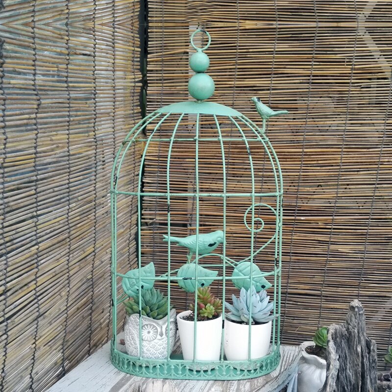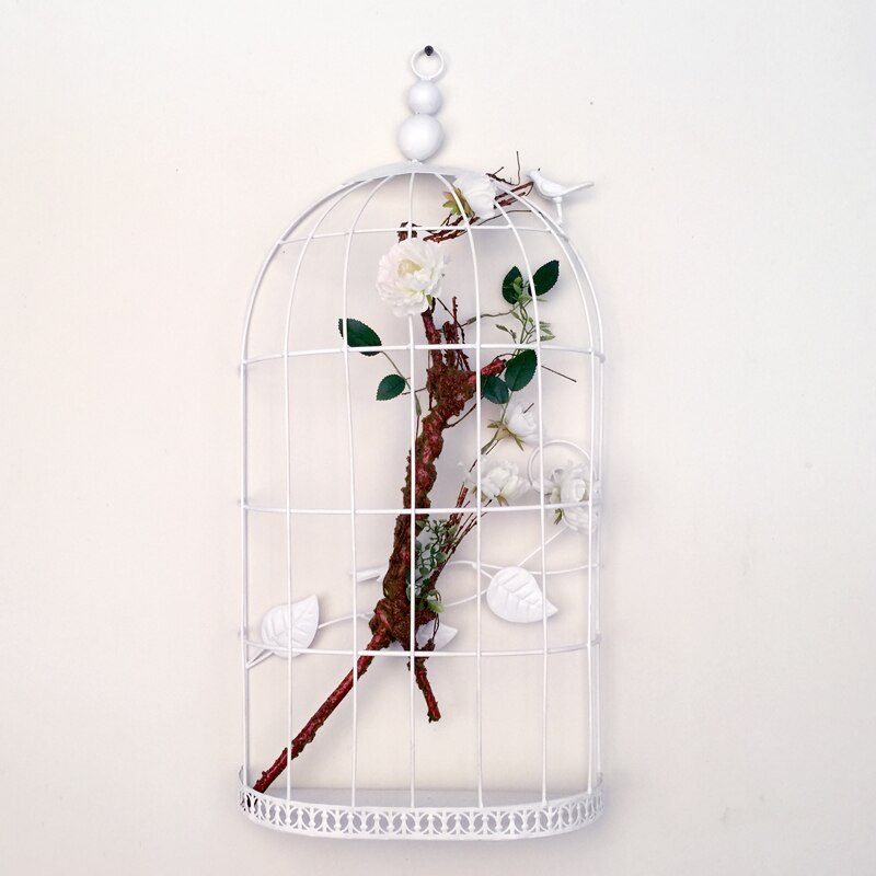 Add some detail to your indoor or outdoor space with this beautifully crafted iron cage wall ornament. Adorned with two small birds and vines, this cage has enough room to add small potted plants or flower creations.