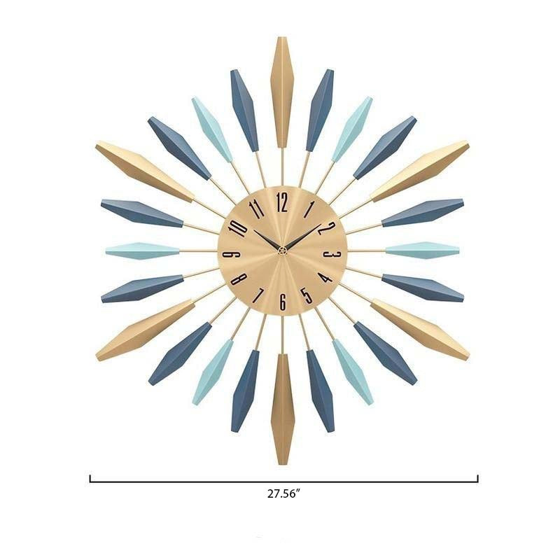 Eye-catching and breathtaking, this Nordic metal feather wall clock will leave your guests in awe. Featuring a bronze faceplate with minimalist clock hands, this elegant wall clock is encircled by bronze and blue metal feathers, making it a striking addition to your home or office.